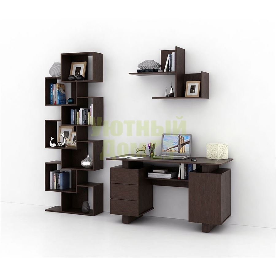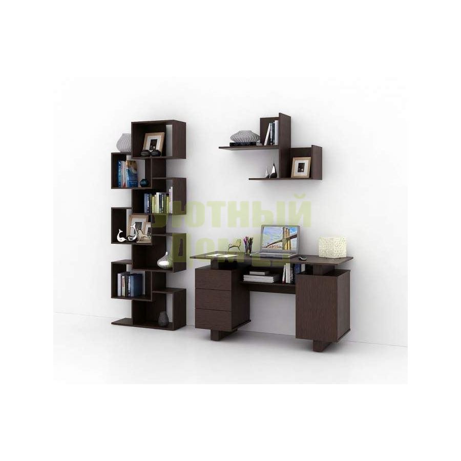 Каждый элемент возможно приобрести по отдельности. Состав комплекта: стол Ренцо-3 (1 шт.), стеллаж Зет-4 (1 шт.), полка Файн-13 (1 шт.). Декоративные заглушки в тон мебели для скрытия технологических отверстий. Сборку данного товара желательно осуществлять вдвоем во избежание травмоопасных ситуаций или механических повреждений мебели.