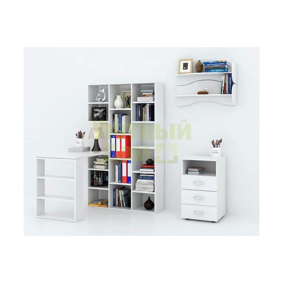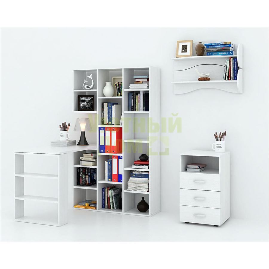 Каждый элемент возможно приобрести по отдельности. Состав комплекта: стеллаж Рикс-1 (1 шт.), стол Рикс-5 (1 шт.), тумба Альба-4 (1 шт.), полка Тэя-1 (2 шт.).