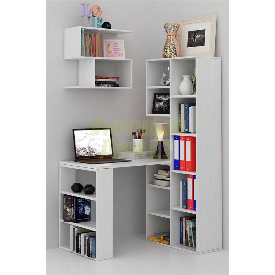 Каждый элемент возможно приобрести по отдельности. Состав комплекта: стеллаж Рикс-2 (1 шт.), стол Рикс-5 (1 шт.), полка Файн-12 (1 шт.).