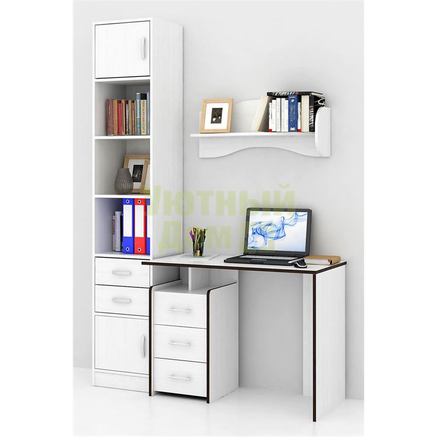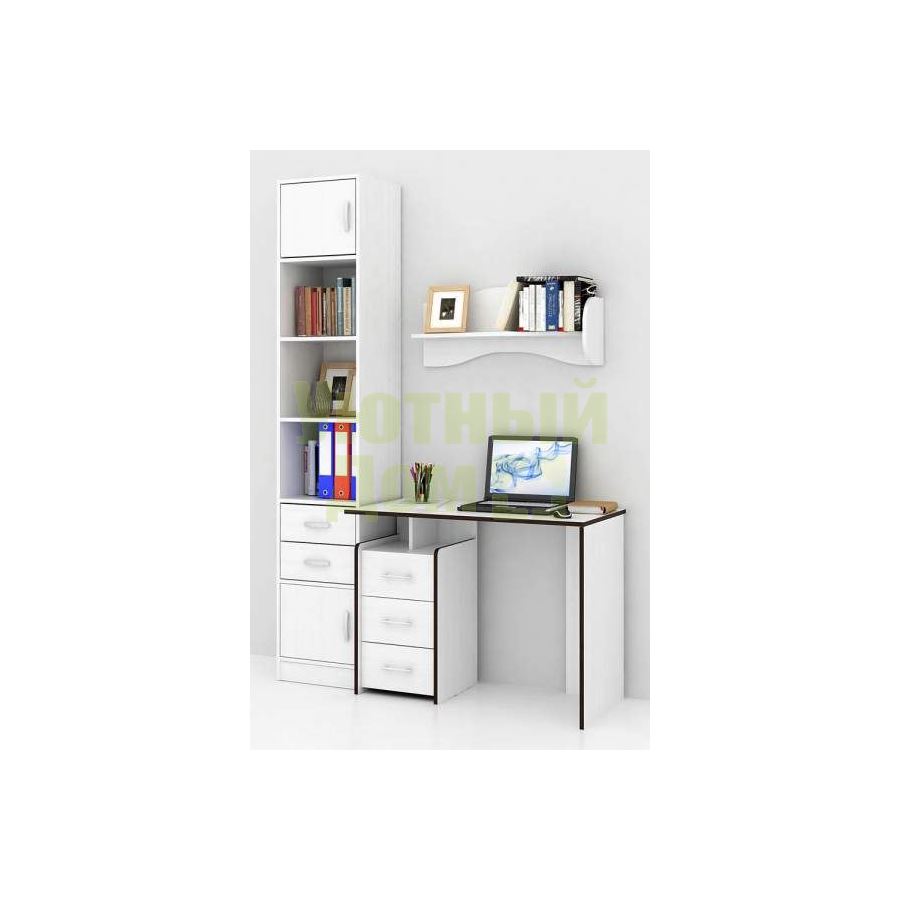 Сборку данного товара жел...читать ещеКаждый элемент возможно приобрести по отдельности. Состав комплекта: стол Слим-1 (1 шт.), стеллаж Либерти-4 (1 шт.), блок ящиков Либерти малый (1 шт.), дверка для стеллажей Либерти (2 шт.), полка Тэя-1 (2 шт.).