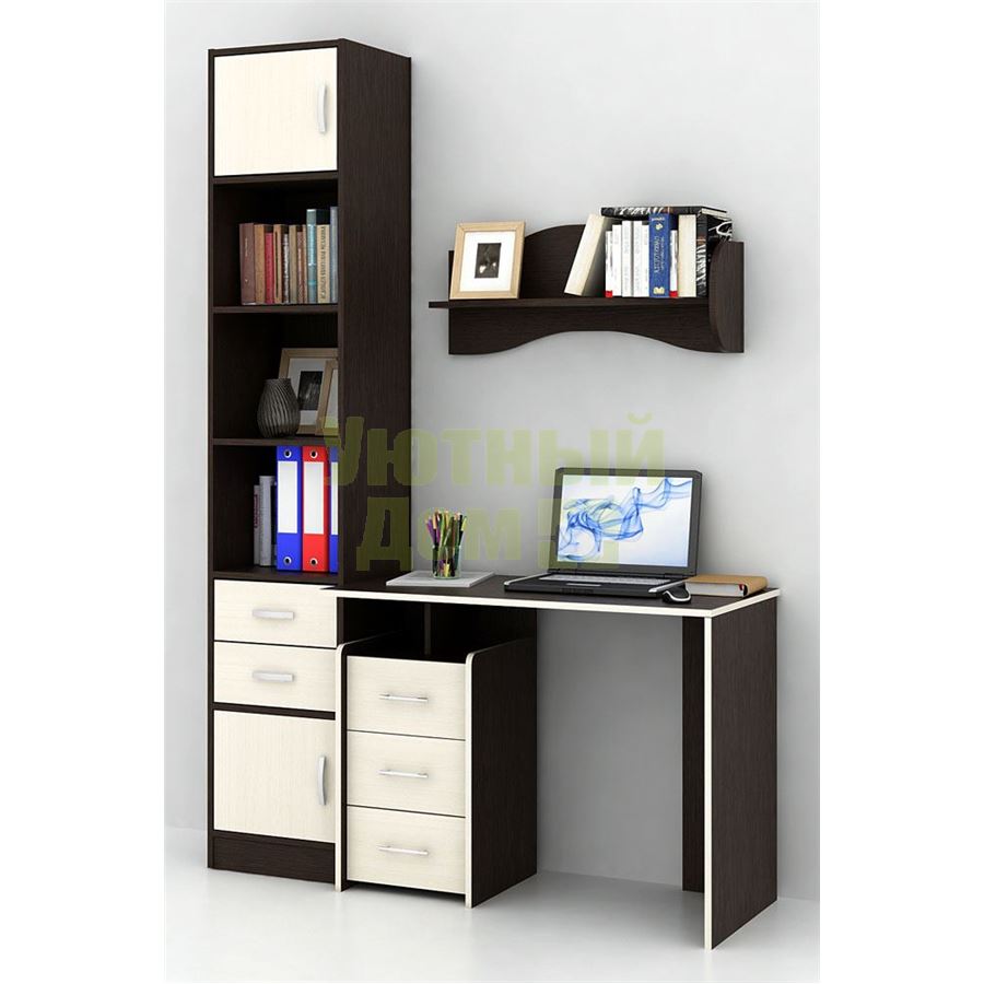 Сборку данного товара жел...читать ещеКаждый элемент возможно приобрести по отдельности. Состав комплекта: стол Слим-1 (1 шт.), стеллаж Либерти-4 (1 шт.), блок ящиков Либерти малый (1 шт.), дверка для стеллажей Либерти (2 шт.), полка Тэя-1 (2 шт.).
