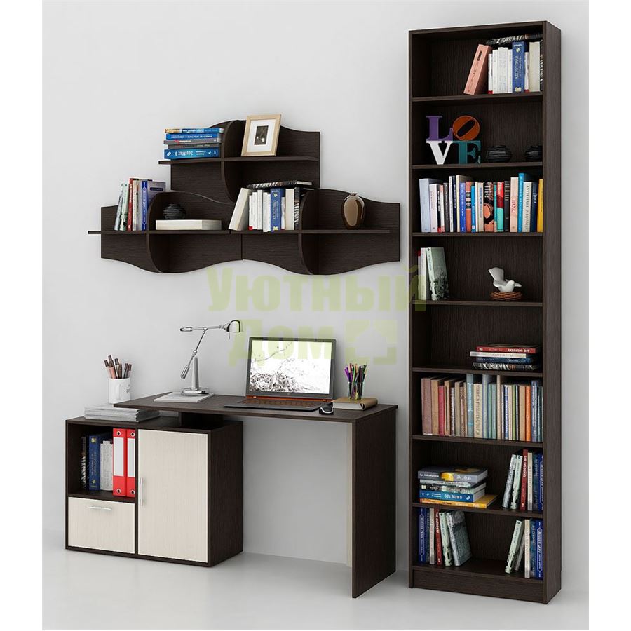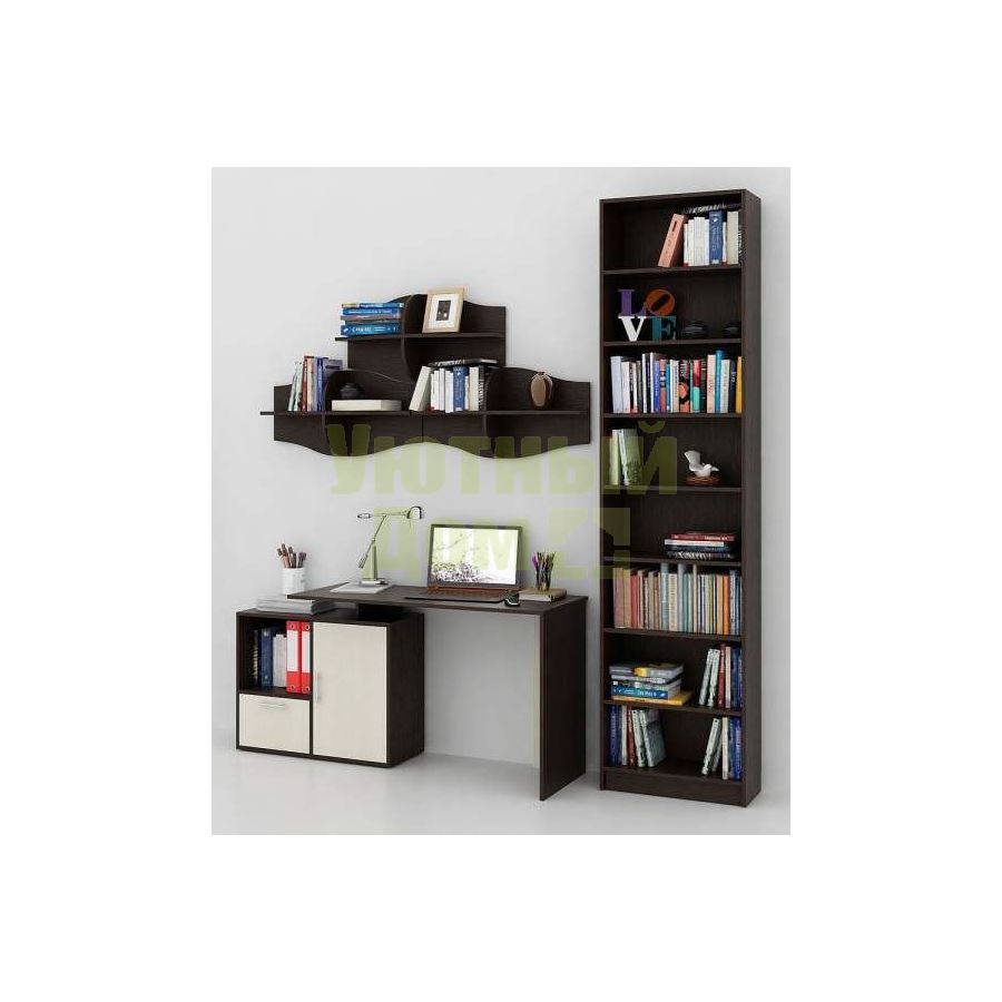 Каждый элемент возможно приобрести по отдельности. Состав комплекта: стол Слим-4 (1 шт.), стеллаж Милан-33 (1 шт.), полка Тэя-3 (3 шт.).