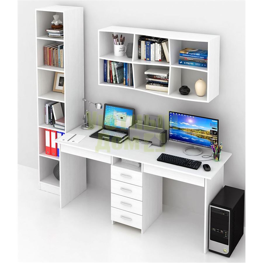Каждый элемент возможно приобрести по отдельности. Состав комплекта: стол Тандем-2Я (1 шт.), полка Вэйв-9 (1 шт.), стеллаж Либерти-4 (1 шт.).