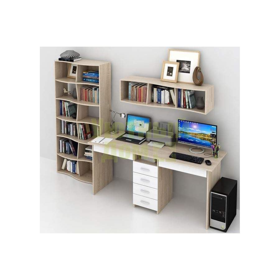 Сборку данного товара желательно осуществлять вдвоем во избежание травмоопасных ситуаций или механич...читать ещеКаждый элемент возможно приобрести по отдельности. Состав комплекта: стол Тандем-2Я (1 шт.), полка Вэйв-8 (1 шт.), стеллаж Вэйв-1 (1 шт.).