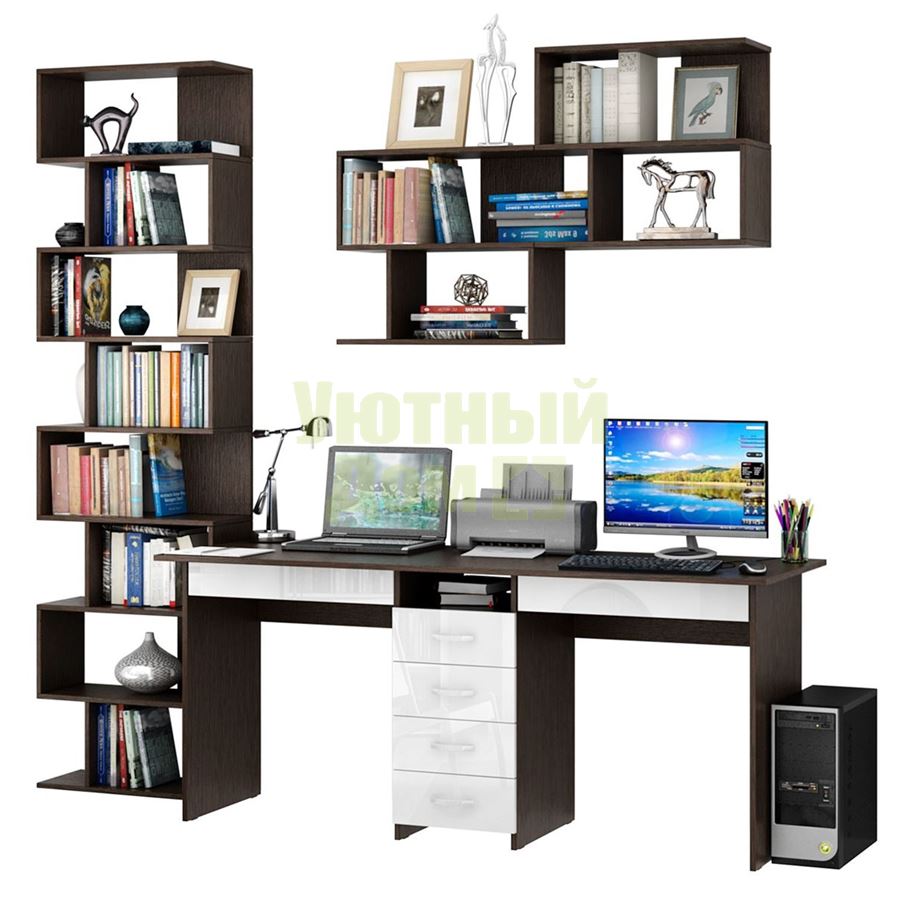 Сборку данного товара желательно осуществлять вдвоем во избежание травмоопасных ситу...читать ещеКаждый элемент возможно приобрести по отдельности. Состав комплекта: стол Тандем-2Я Глянец (1 шт.), полка Файн-12 (2 шт.), стеллаж Файн-2 (1 шт.).