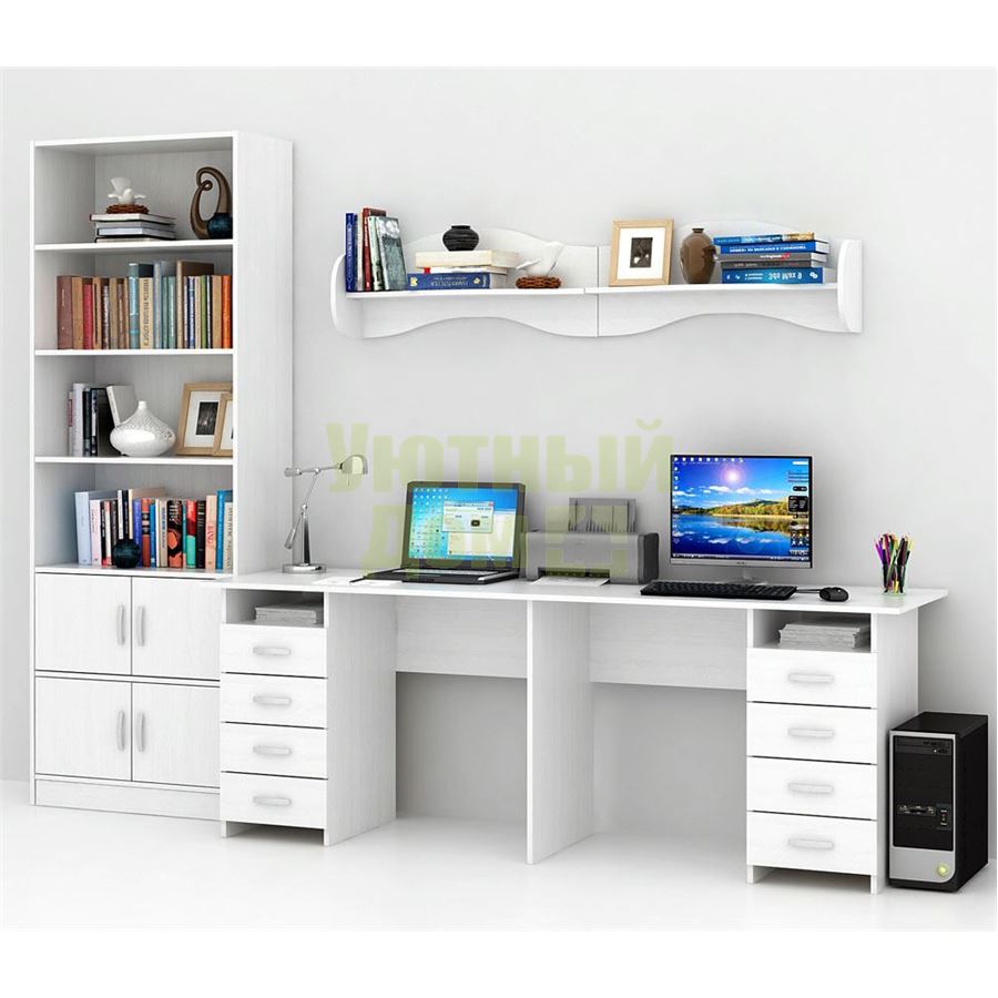 Сборку данного товара желательно осуществлять вдвоем во избеж...читать ещеКаждый элемент возможно приобрести по отдельности. Состав комплекта: стол Тандем-3 (1 шт.), стеллаж Либерти-5 (1 шт.), дверка для стеллажей Либерти (4 шт.), полка Тэя-1 (2 шт.).