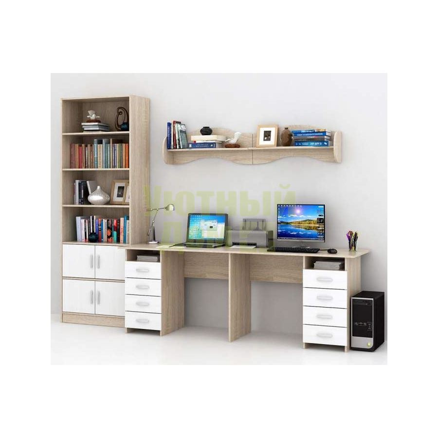 Каждый элемент возможно приобрести по отдельности. Состав комплекта: стол Тандем-3 (1 шт.), стеллаж Либерти-5 (1 шт.), дверка для стеллажей Либерти (4 шт.), полка Тэя-1 (2 шт.).
