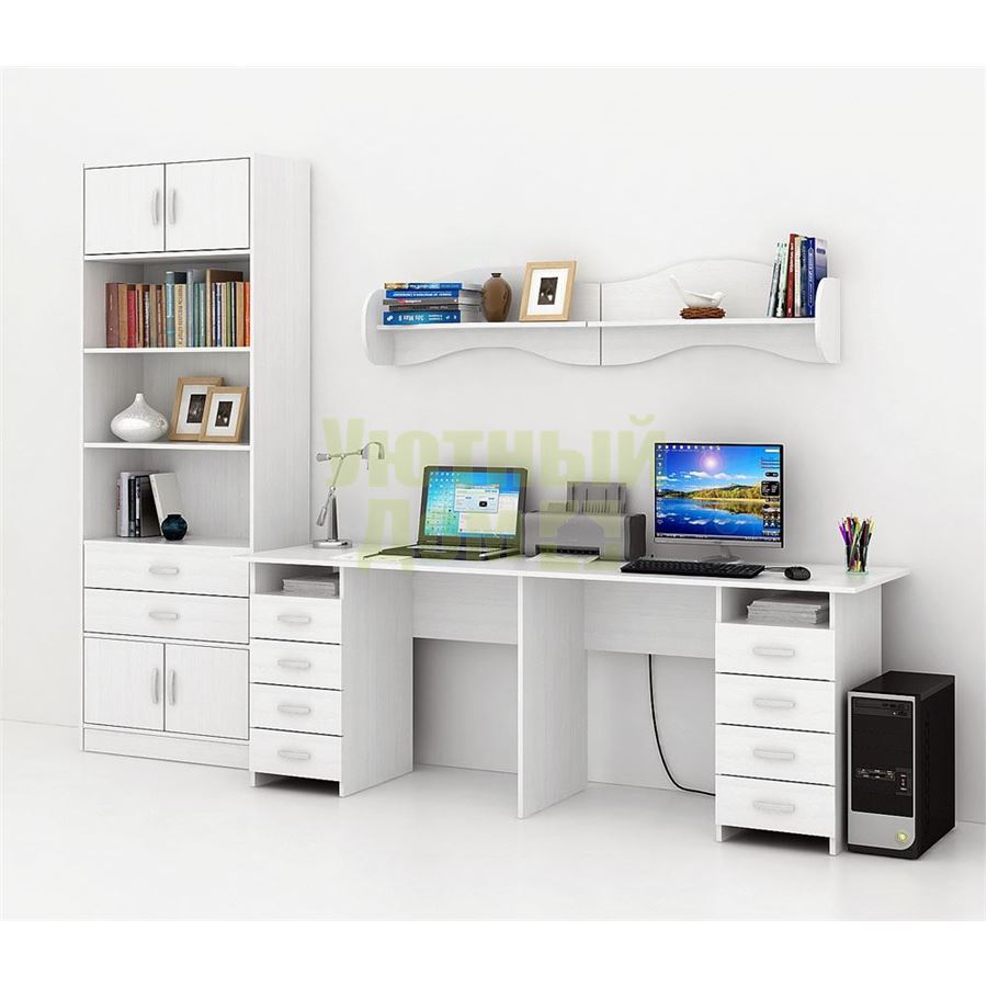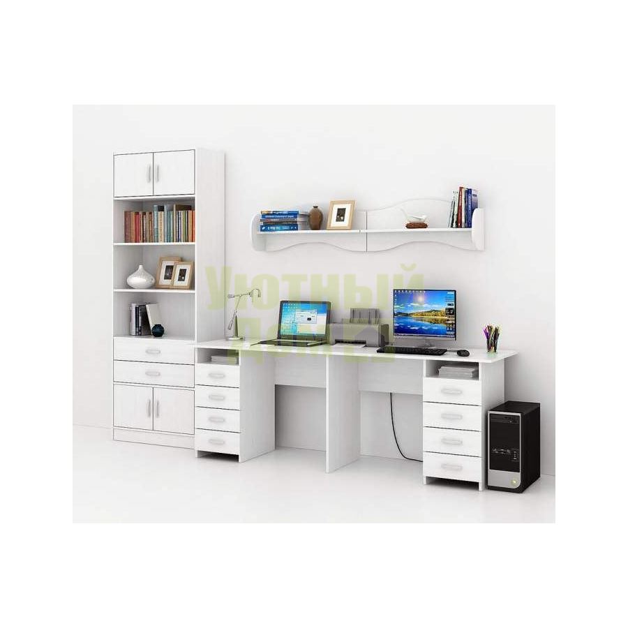 Каждый элемент возможно приобрести по отдельности. Состав комплекта: стол Тандем-3 (1 шт.), стеллаж Либерти-5 (1 шт.), блок ящиков Либерти большой (1 шт.), дверка для стеллажей Либерти (4 шт.), полка Тэя-1 (2 шт.).