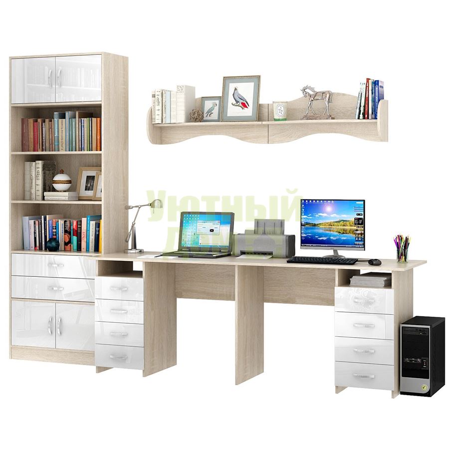 Каждый элемент возможно приобрести по отдельности. Состав комплекта: стол Тандем-3 Глянец (1 шт.), стеллаж Либерти-5 (1 шт.), блок ящиков Либерти большой Глянец (1 шт.), дверка для стеллажей Либерти Глянец (4 шт.), полка Тэя-1 (2 шт.).