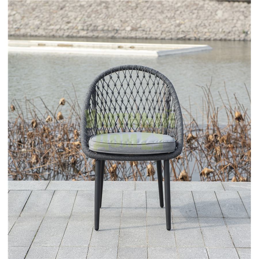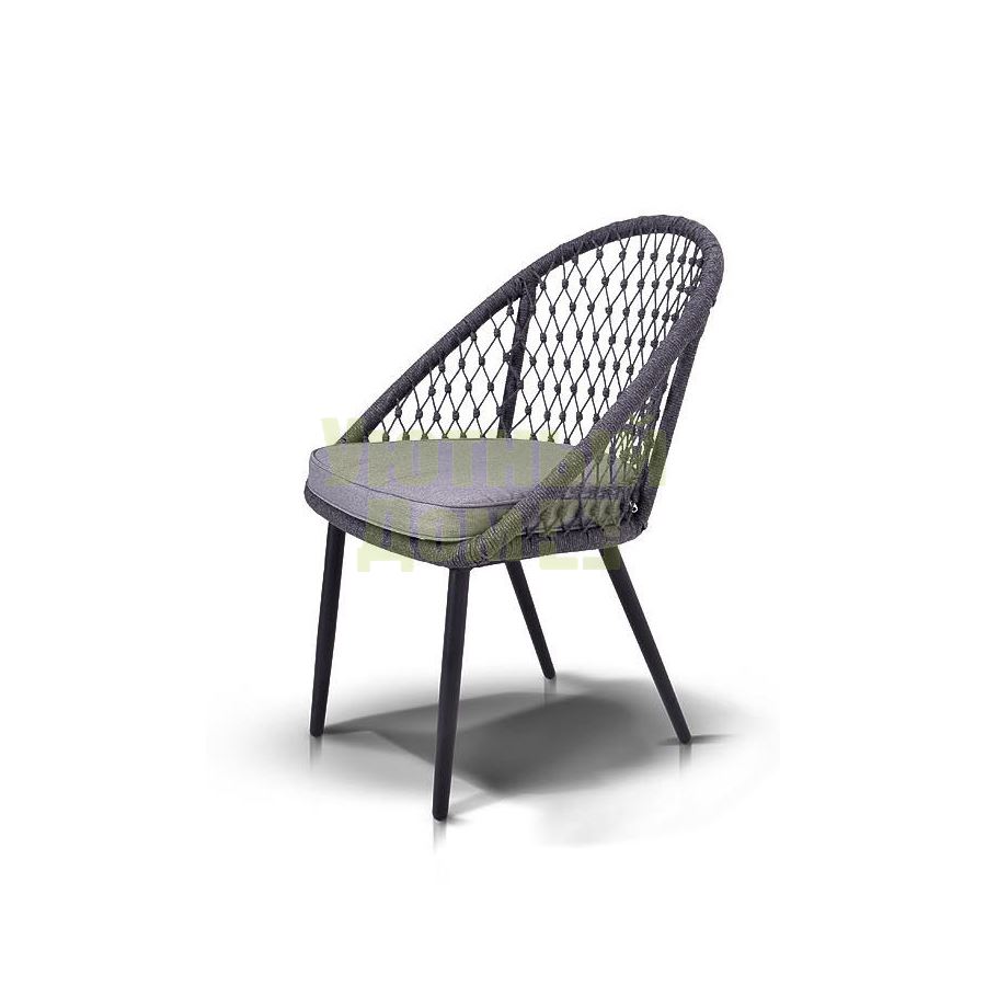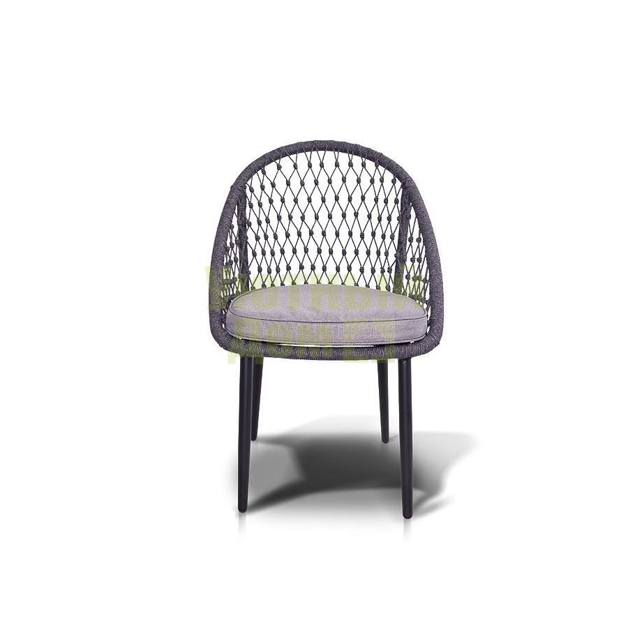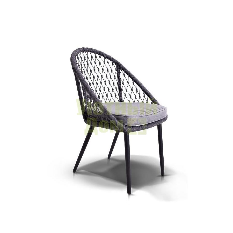Стул "Версаль", алюминиевый каркас, оплетен вручную эластичными синтетическими лентами из высокопрочных полиэфирных волокон, в комплекте с подушкой, размеры 580X640X870, цвет темно-серый