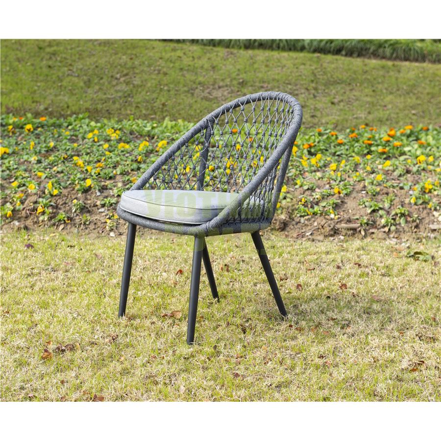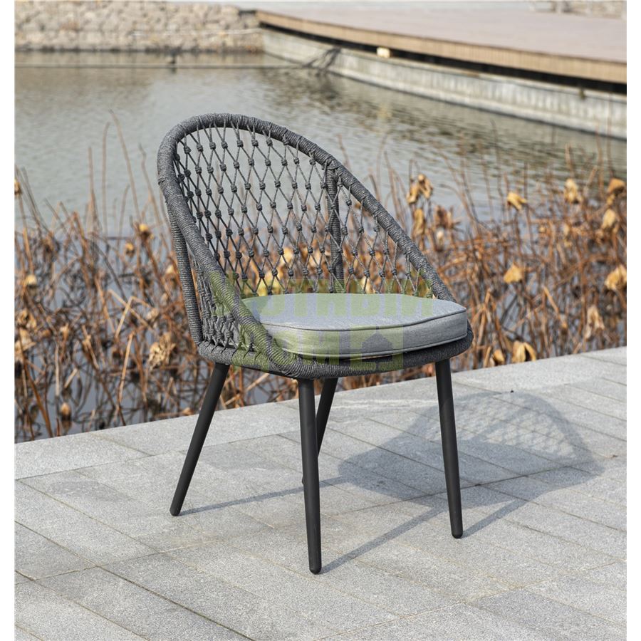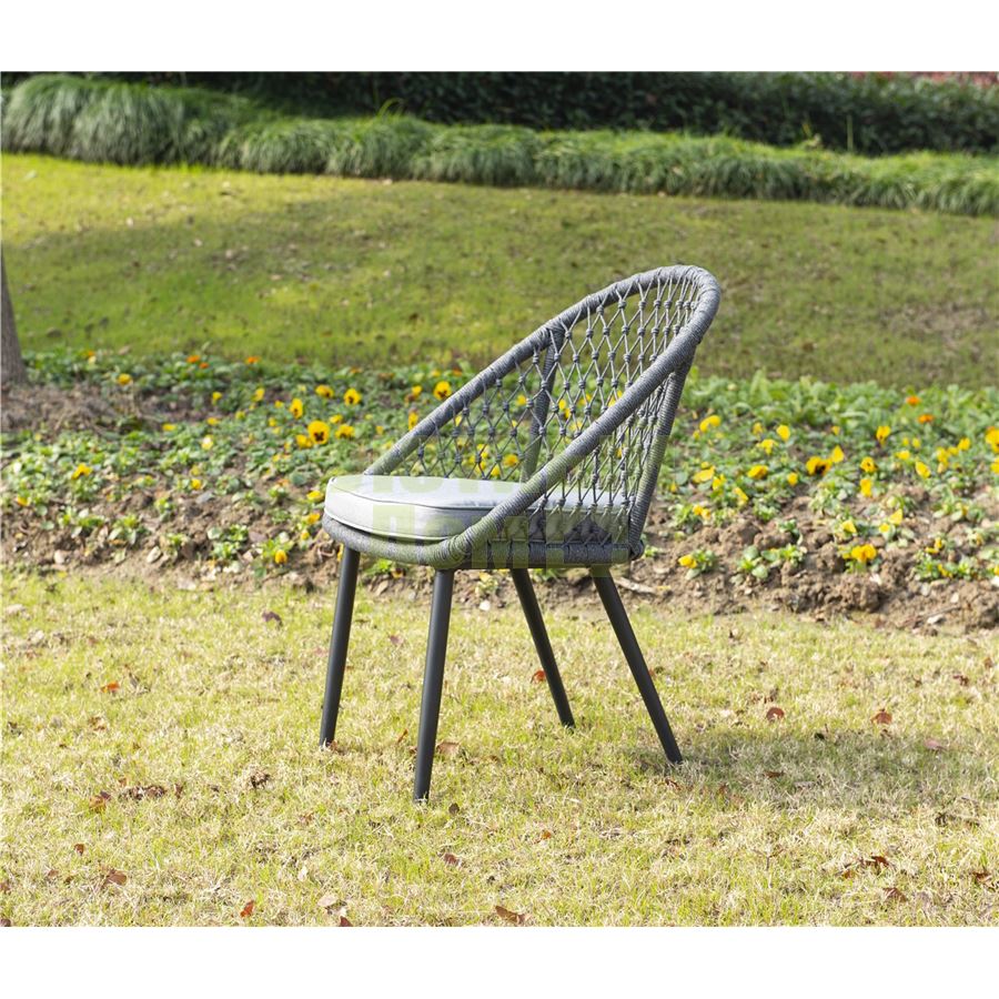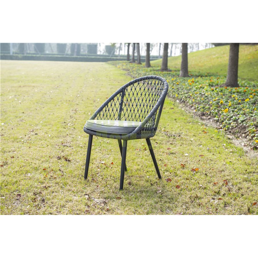 Стул "Версаль", алюминиевый каркас, оплетен вручную эластичными синтетическими лентами из высокопрочных полиэфирных волокон, в комплекте с подушкой, размеры 580X640X870, цвет темно-серый
