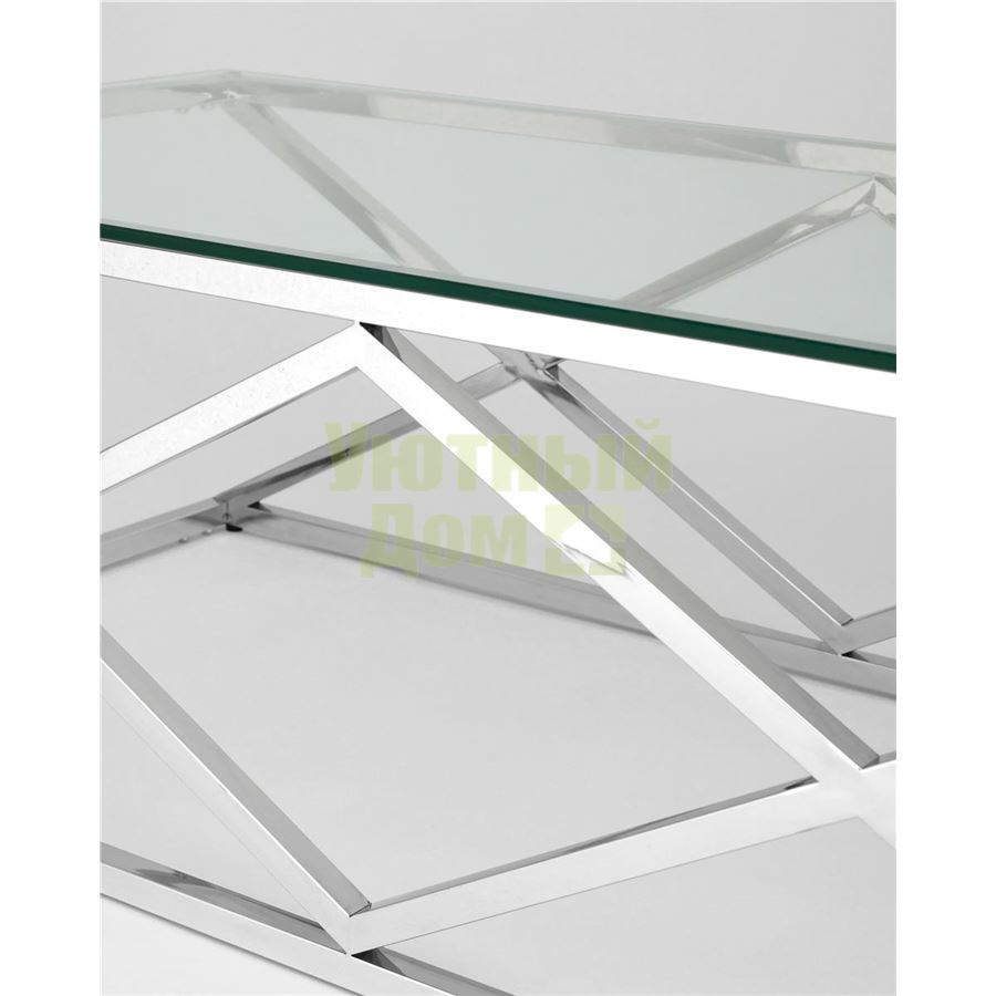 Журнальный стол ИНСИГНИЯ, благодаря оригинальной форме, станет ярким дизайнерским акцентом в интерьере. Каркас стола изготовлен из нержавеющей стали, столешница - закаленное стекло.