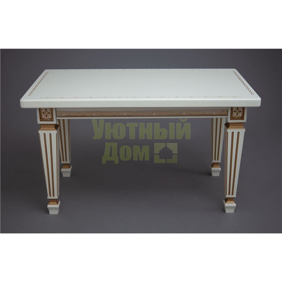 Вариант поставки: В разобранном виде; Тип: Стол кофейный; Длина столешницы: 100; Материал подстолья: МДФ; Упаковка: 1 коробка; Ширина столешницы: 60; Материал ножек: Массив бук; Высота: 57; Цвет : слоновая кость+патина золото; Материал столешницы: МДФ/Отделка шпон Бук